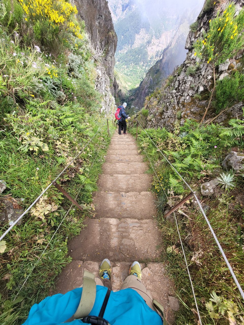 A pak je tu samotný terén. Ostrovní hory jsou jiné než ty naše. Často prudší, členitější, s jiným povrchem. Úzké stezky, kamenité pasáže, levády vedené exponovaným terénem. Pro člověka, který to nezná, je těžké si náročnost představit – a právě tady často vzniká nejistota.